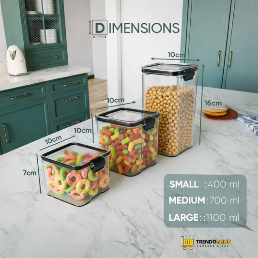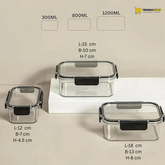 TrendoShop Airtight Food Storage Containers Set, BPA-Free, Leak Proof, Transparent Rectangle Containers with Lids, 300ML-800ML-1200ML, 3 Piece Set for Fridge and Pantry Organisation