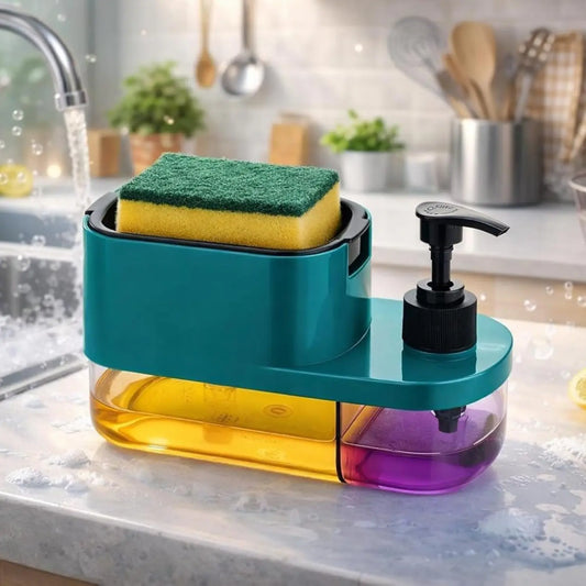 TrendoShop Soap Dispenser with Sponge Holder 3 in 1 and Double Layer Liquid Soap Pump ABS Plastic for Kitchen Sink Countertop and Bathroom Multicolor