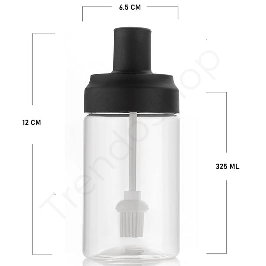 Leak-Proof Oil Dispenser Bottle with Silicone Brush | 325 ml BPA-Free Plastic Oil Bottle for Cooking, Baking & Grilling | Transparent with Black Lid