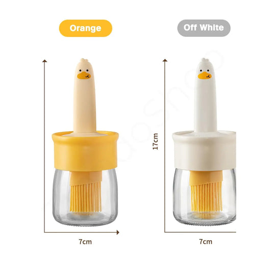 Duck-Shaped Oil Dispenser with Silicone Brush | 250 ml Plastic Oil Bottle for Kitchen | Fun & Mess-Free Oil Applicator for Cooking, Baking & BBQ | Yellow