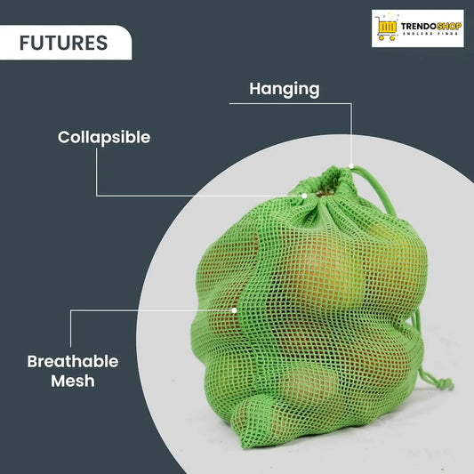 100% Cotton Reusable Drawstring Mesh Storage Bags for Fruits & Vegetables | Eco-Friendly Fridge Organizer Net Bags | Green Color