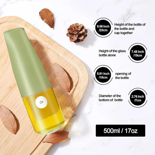 Premium Glass 2 in 1 Oil Sprayer & Dispenser for Cooking 500ml Food Grade Oil Bottle with Adjustable Nozzle Perfect for Air Fryer Roasting BBQ Baking and Frying Multicolour