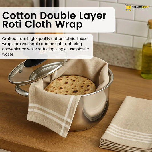 TrendoShop Cotton Roti Cover with Flaps | Double Layer Chapati Wrap for Hot Roti | Traditional Cotton Roti Cloth for Kitchen & Tiffin