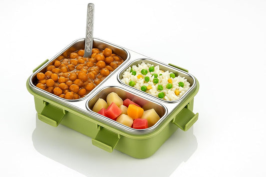 Steel Tiffin Box Stainless Steel Lunch Box, 3 Compartment Leak Proof Food Container, Reusable Metal Meal Box for Office, Travel, Work & Outdoor Use