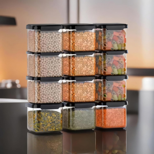TrendoShop Airtight Storage Jar Set for Kitchen BPA Free Plastic Containers with Secure Lid Kitchen Organizer Pantry Storage Containers for Dry Fruits Dal Rice Multipurpose Black