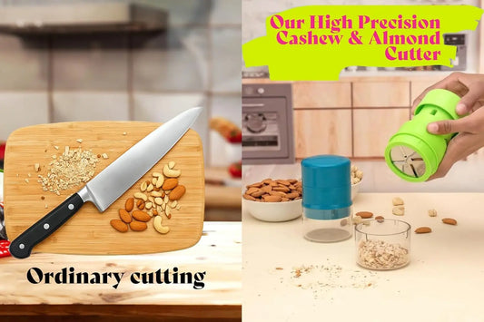TrendoShop Dry Fruit Cutter & Slicer with Storage Cup | Stainless Steel Blades for Almond, Cashew, Pistachio & Nut Slicing | Easy Grip, Durable Manual Nut Chopper (Multicolour)