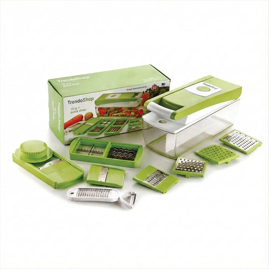 TrendoShop Multipurpose Kitchen Chopper, Vegetable Fruit Cutter with Unbreakable Container, Push-to-Clean Feature, Food Grade Plastic Grater Slicer Dicer Set, Green
