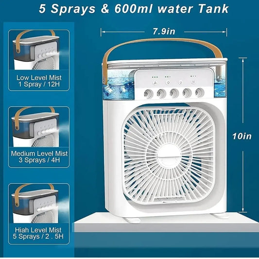 Portable Mini Air Cooler Fan with Water Spray & LED Light – 3 Speed Personal Room Cooler, USB Mini AC for Home, Office & Travel