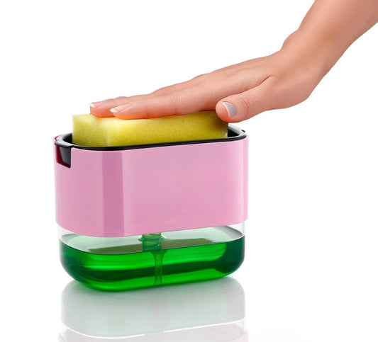 TrendoShop Press Soap Dispenser with Sponge Holder 2 in 1 and Smart Top Liquid Soap Dispenser ABS Plastic for Kitchen Sink Countertop 350 ml to 380 ml